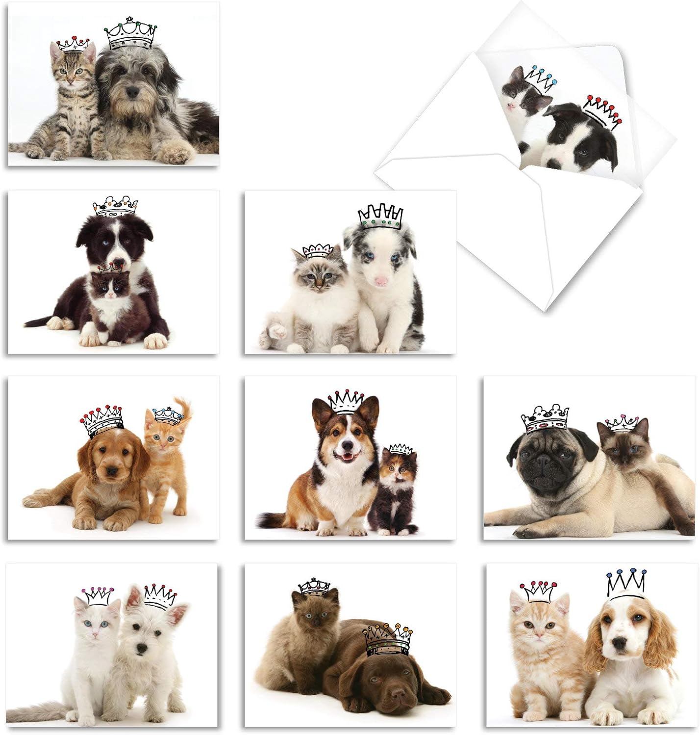 Amazon Com 10 Assorted Thank You Cards Featuring Cats And Dogs Wearing Crowns With Envelopes Copy Cats Greeting Card Set For All Occasions 4 X 5 12 Inch M6596tyg Office Products