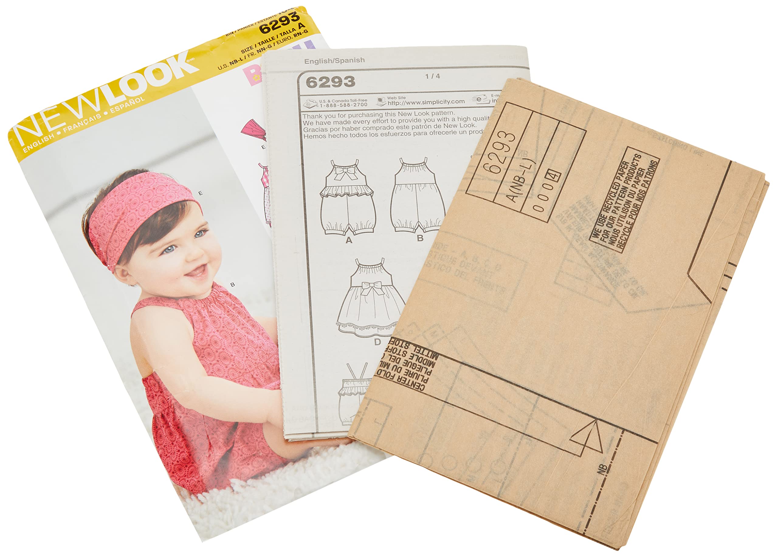 Amazon Com Simplicity Creative Patterns New Look 6293 Babies Romper Dress Panties And Headband A Nb Small Medium Large Arts Crafts Sewing